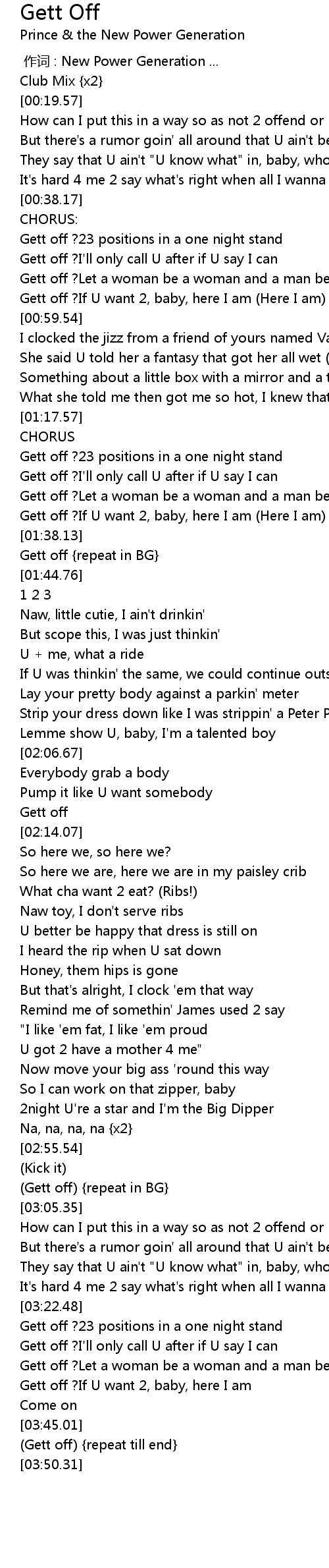 | [03:00.55] | (Gett off) {repeat in BG} |