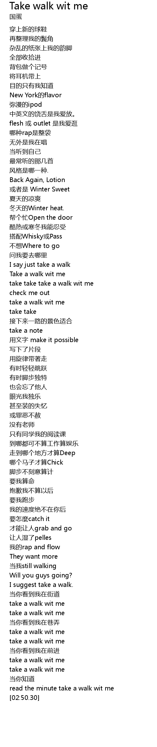 | [02:42.75] | read the minute take a walk wit me |