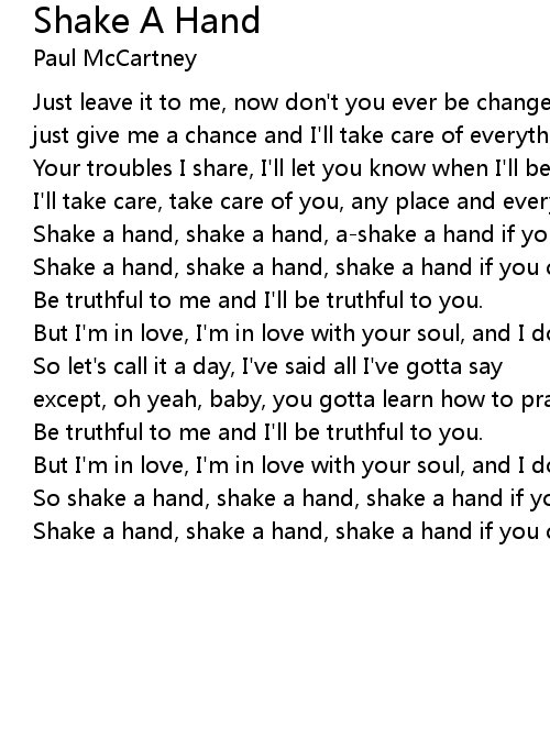 Shake a hand, shake a hand, shake a hand if you can. |