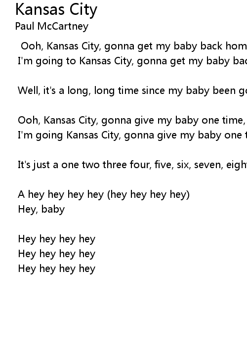 | Ooh, Kansas City, gonna give my baby one time, oh yeah yeah | |