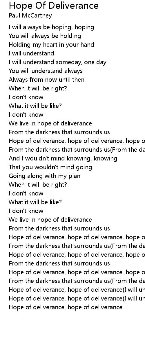Hope of deliverance, hope of deliverance, hope of deliverance |