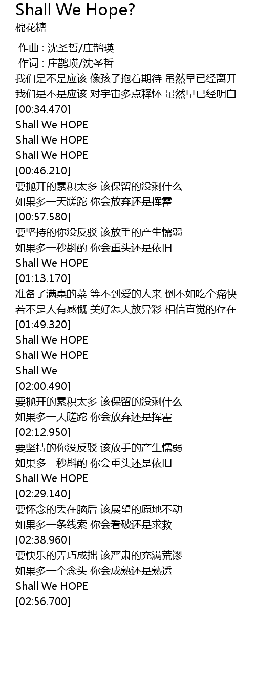| [00:00.00] | 作曲 : 沈圣哲/庄鹊瑛 |
