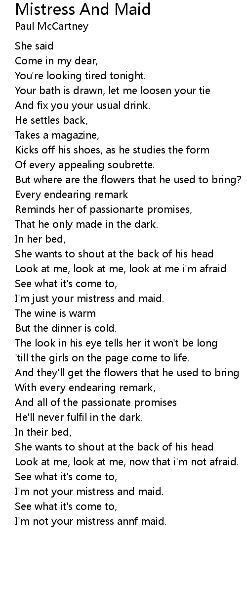 I'm just your mistress and maid. |