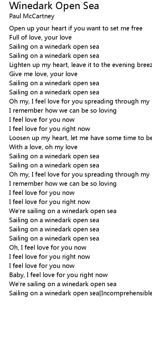 We're sailing on a winedark open sea |