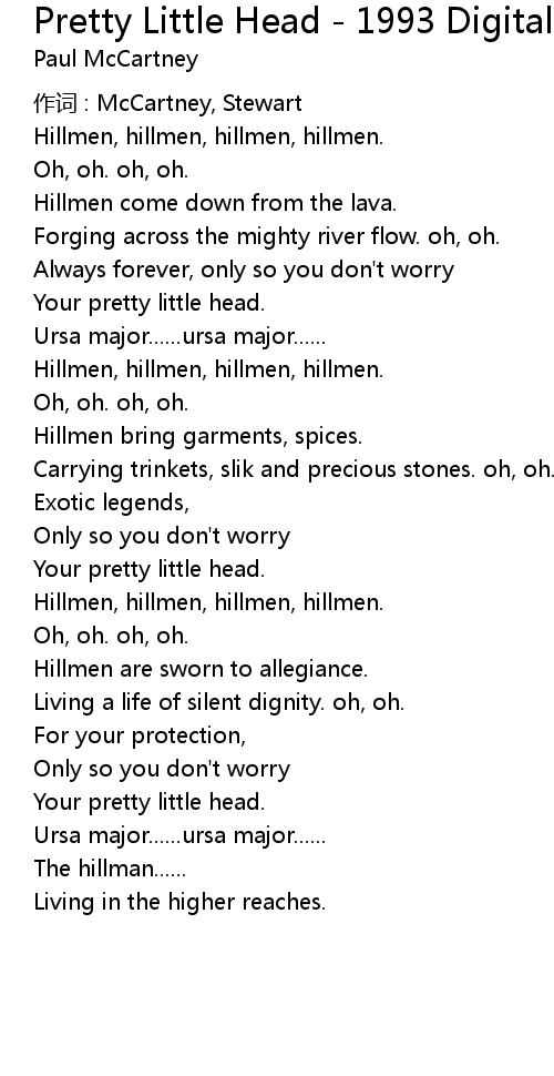 | Song | Pretty Little Head - 1993 Digital Remaster |