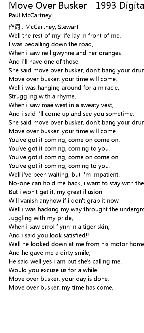 | Song | Move Over Busker - 1993 Digital Remaster |