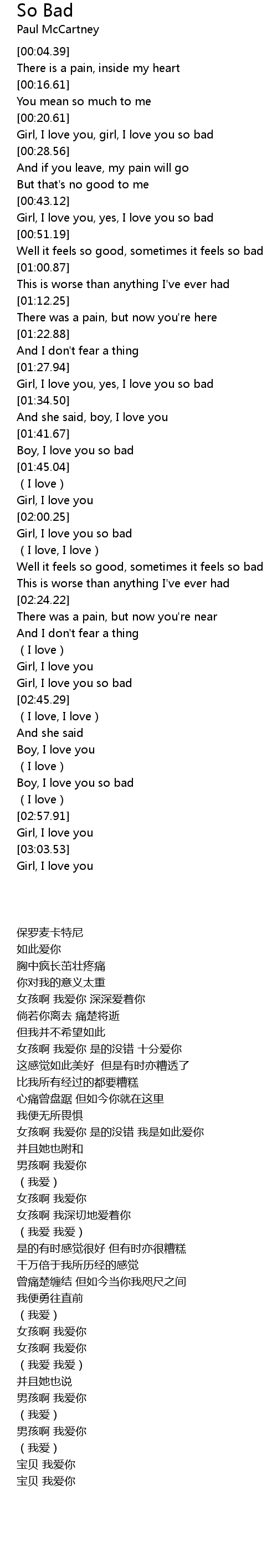 | [00:45.18] | Girl, I love you, yes, I love you so bad |