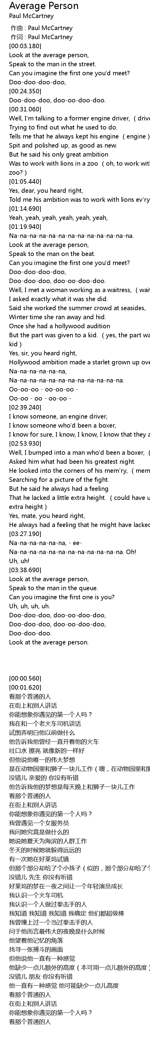 | [00:01.00] | zuo ci : Paul McCartney |