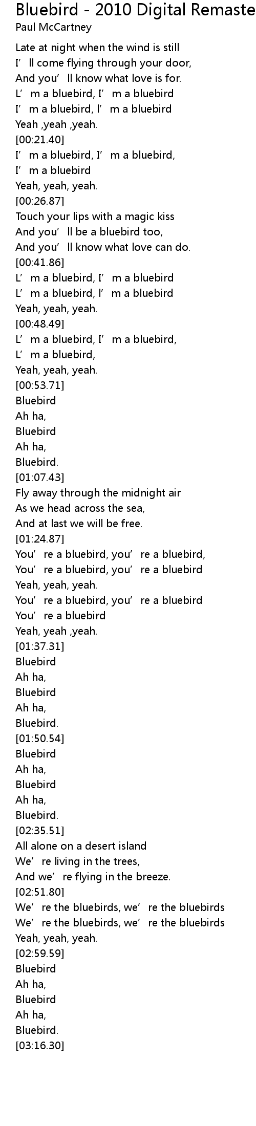 | [03:02.86] | Bluebird |