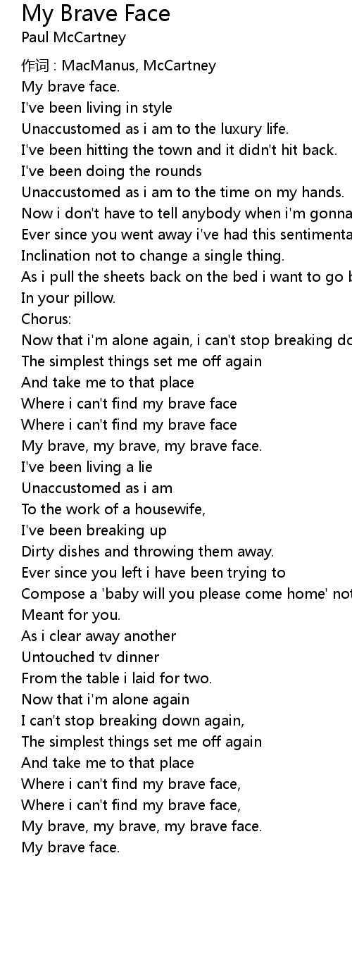 | Where i can' t find my brave face | |