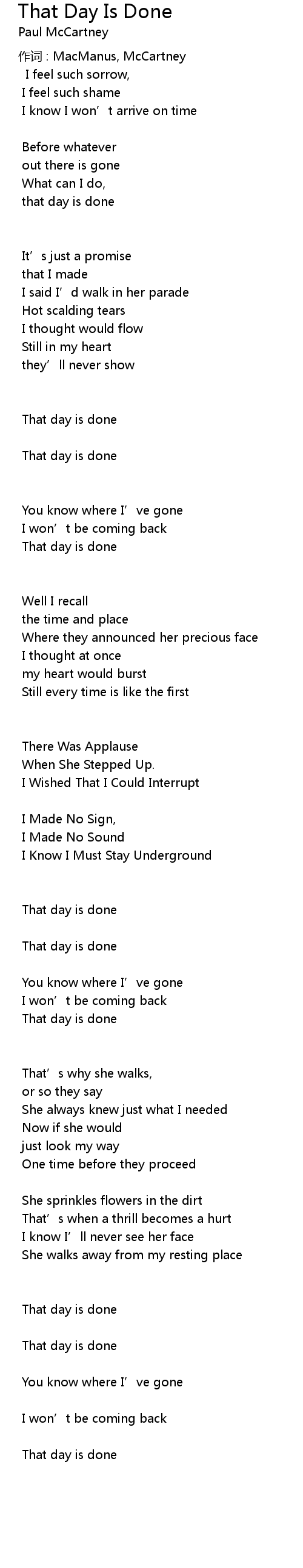 | 作词 : MacManus, McCartney | |
