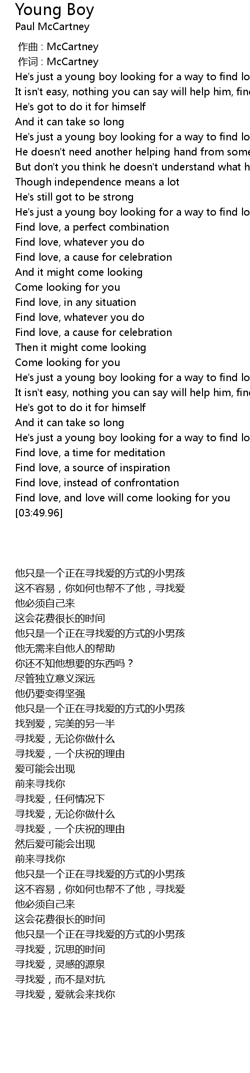 | [00:01.00] | 作词 : McCartney |