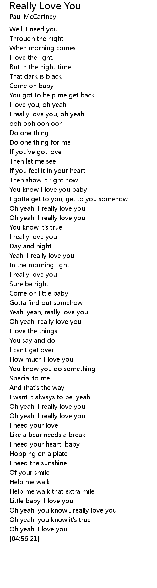 Oh yeah, you know I really love you |