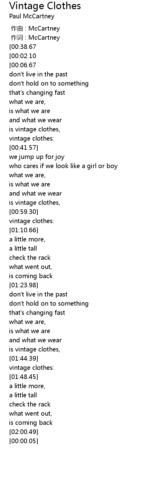 | [02:13.94][00:02.10] | paul mccartneyrvintage clothes |