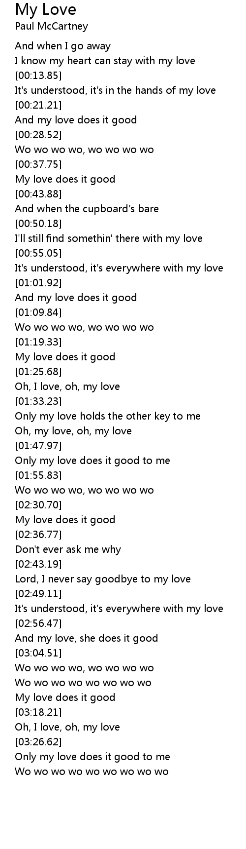 Only my love does it good to me |