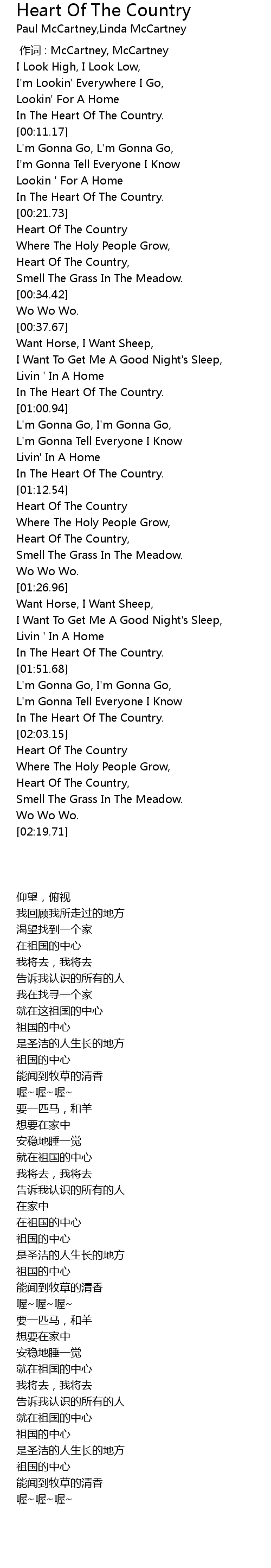 | [02:00.65] | In The Heart Of The Country. |