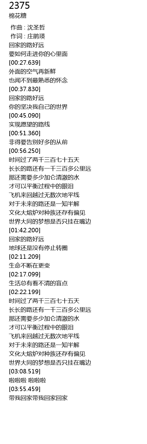 | [02:25.429] | 时间过了两千三百七十五天 |