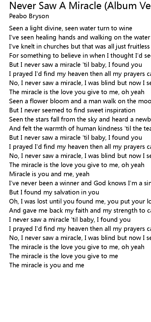 No, I never saw a miracle, I was blind but now I see |