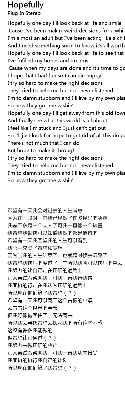 So I'll just look for hope to get rid of all this doubt |