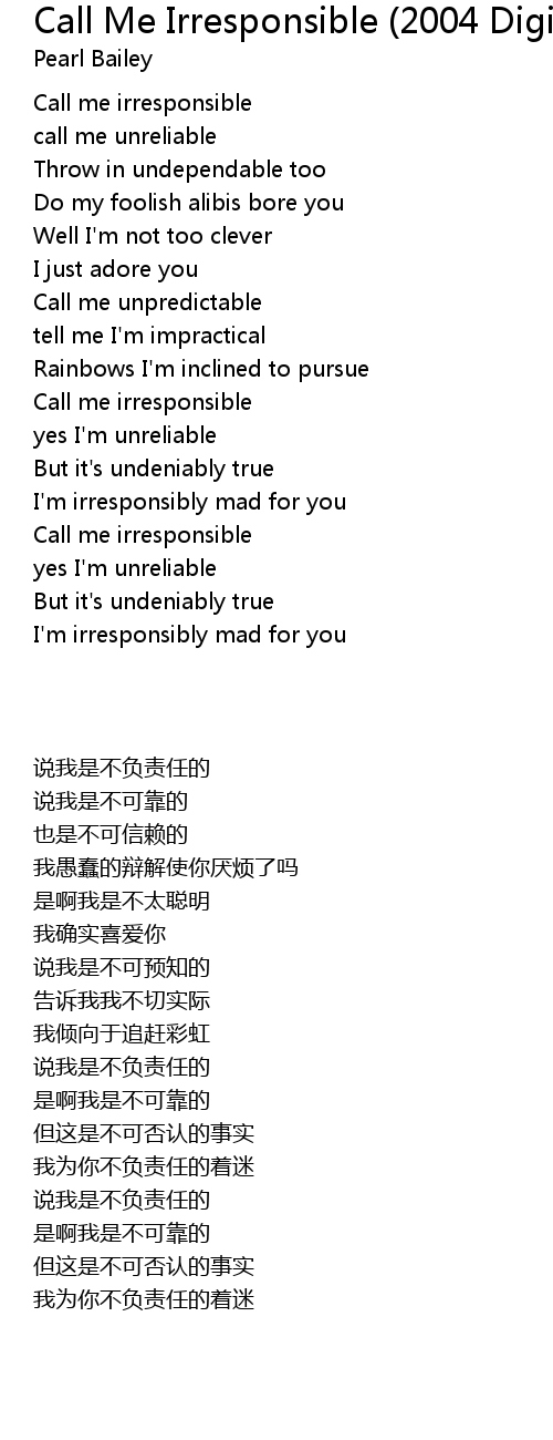 Call Me Irresponsible (2004 Digital Remaster) Lyrics