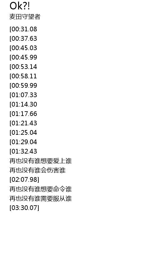 | [02:22.41][00:37.63] | 她天天重覆说OK |