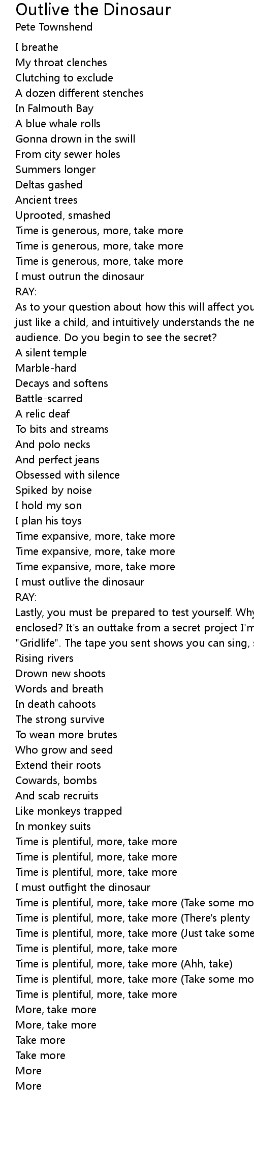 I must outlive the dinosaur |