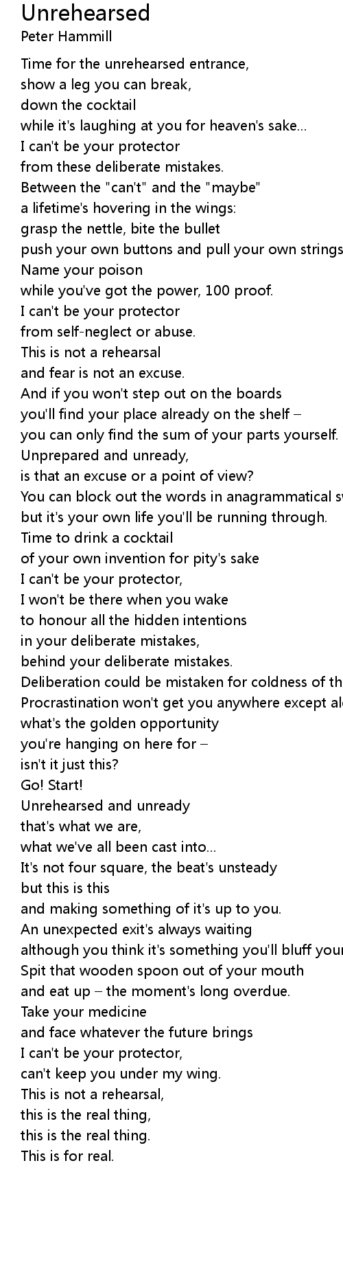 | Unrehearsed and unready | |