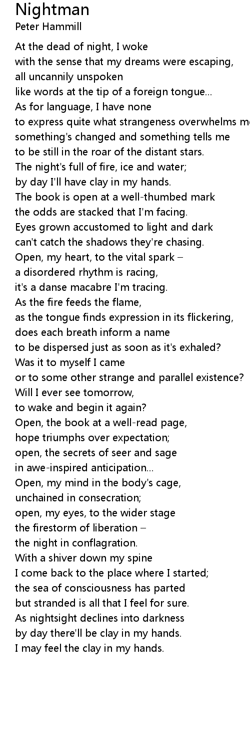 | At the dead of night, I woke | |