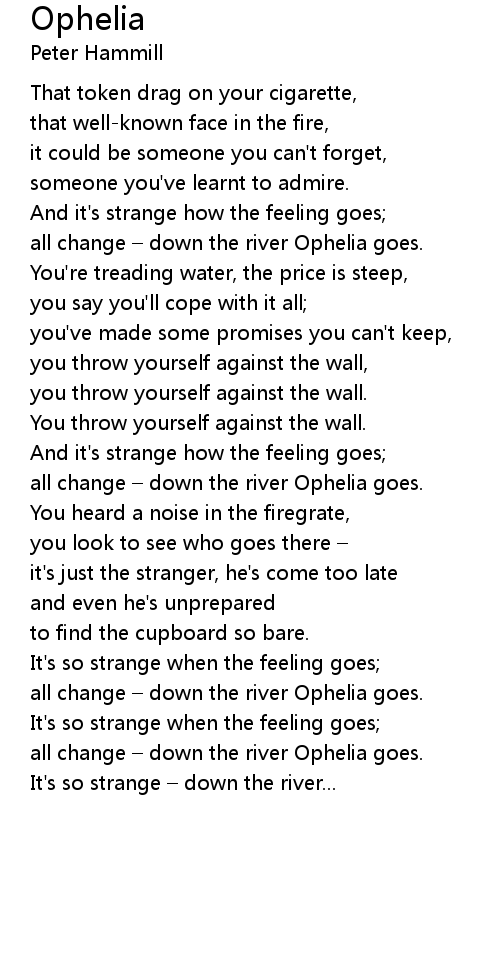 | all change down the river Ophelia goes. | |