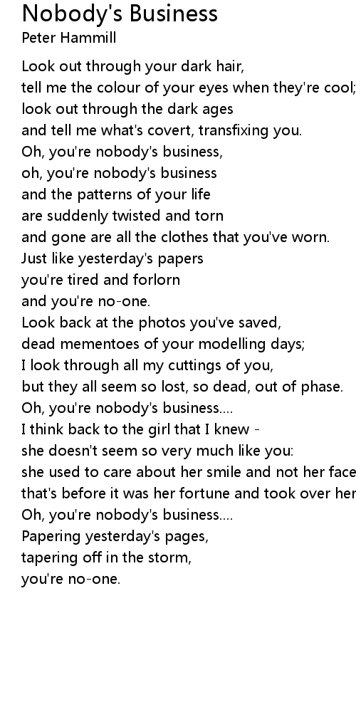 Oh, you're nobody's business, |