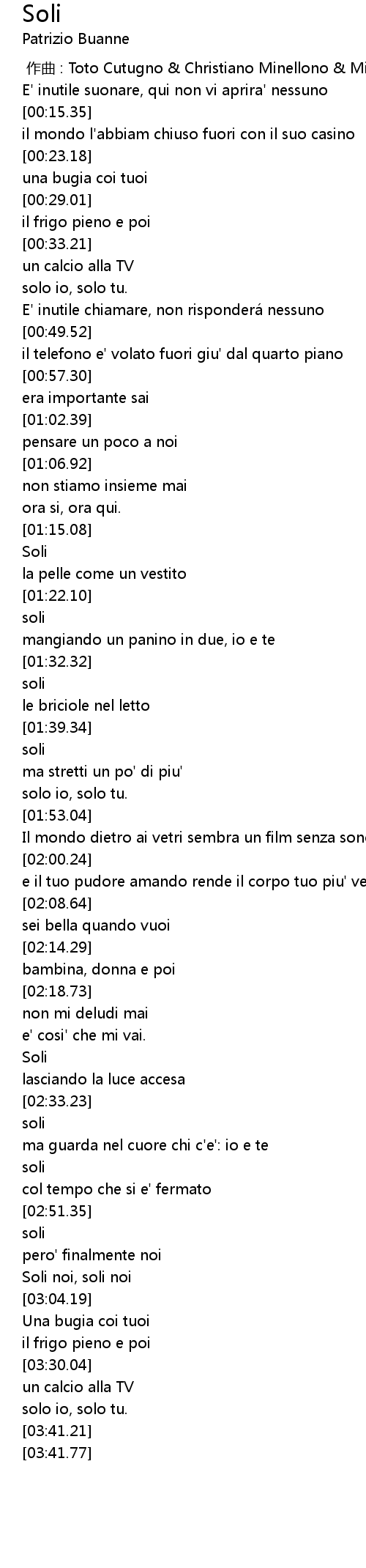 | [02:58.74] | Soli noi, soli noi |