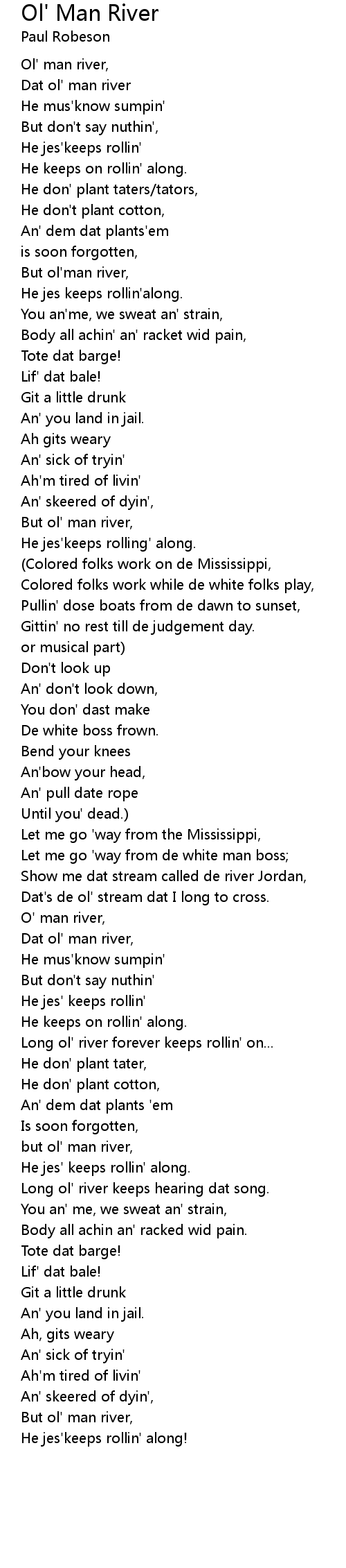 But ol' man river, |
