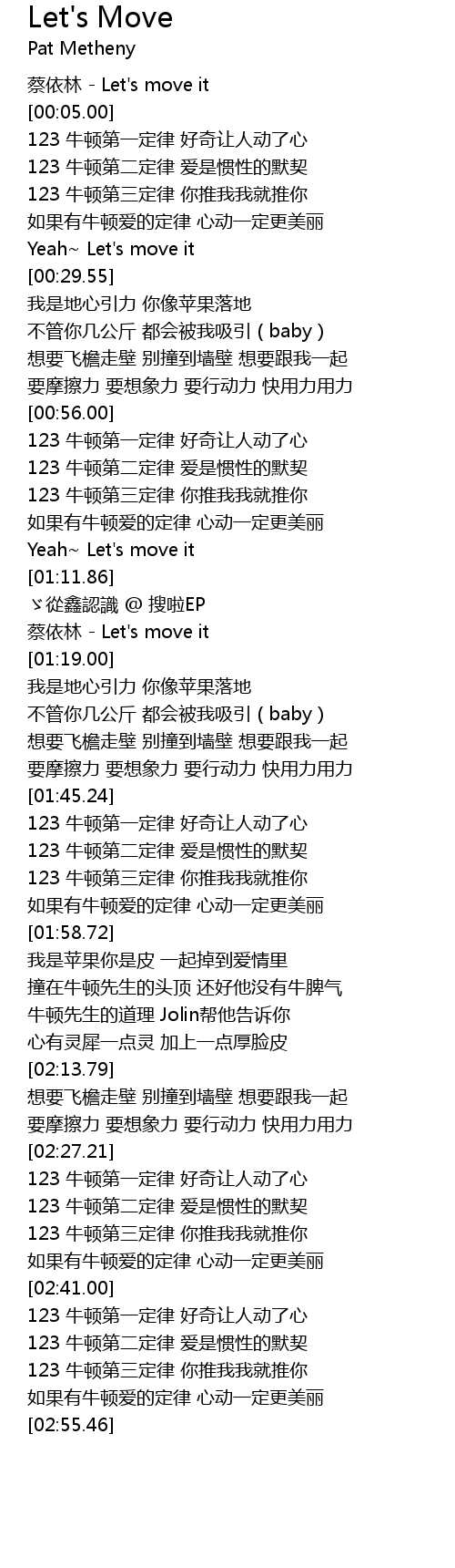 | [02:44.90] | 123 牛顿第二定律 爱是惯性的默契 |