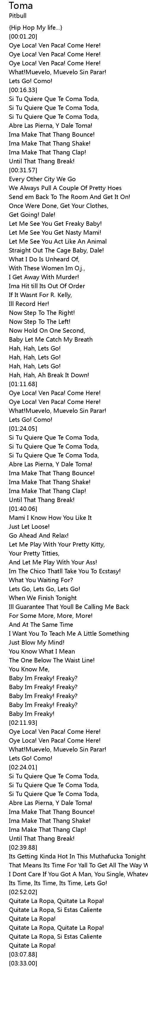 Si Tu Quiere Que Te Coma Toda, |