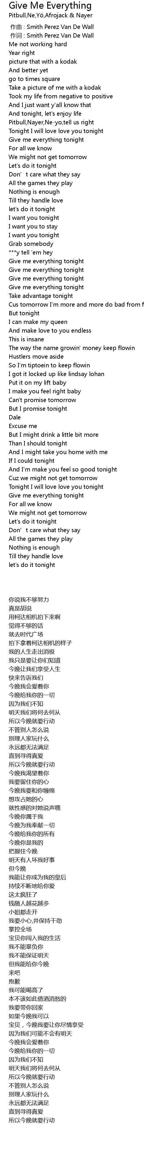 | [00:46.190] | Give me everything tonight |