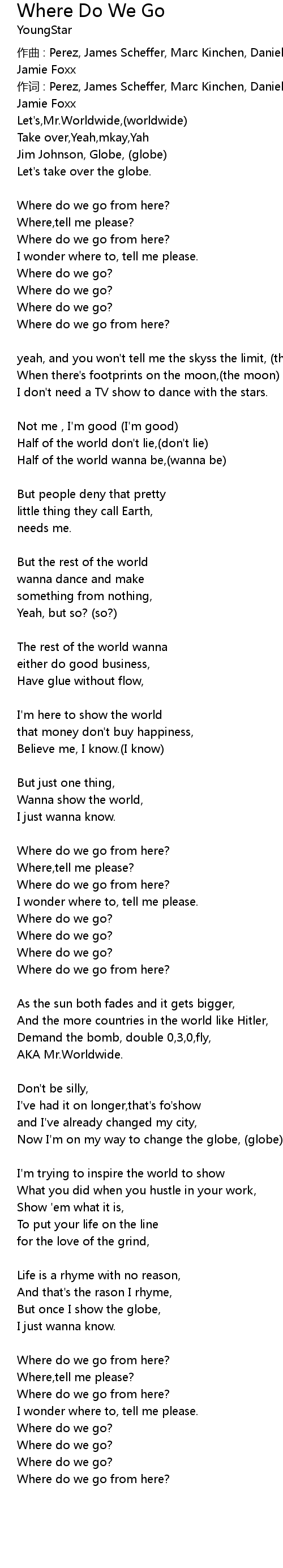 | 作词 : Perez, James Scheffer, Marc Kinchen, Daniel Morris, Leroy Sanchez, Jamie Foxx | |