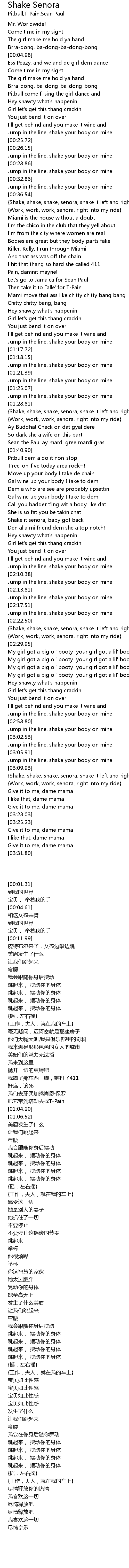 | [01:56.06] | Shake it senora, baby got back |