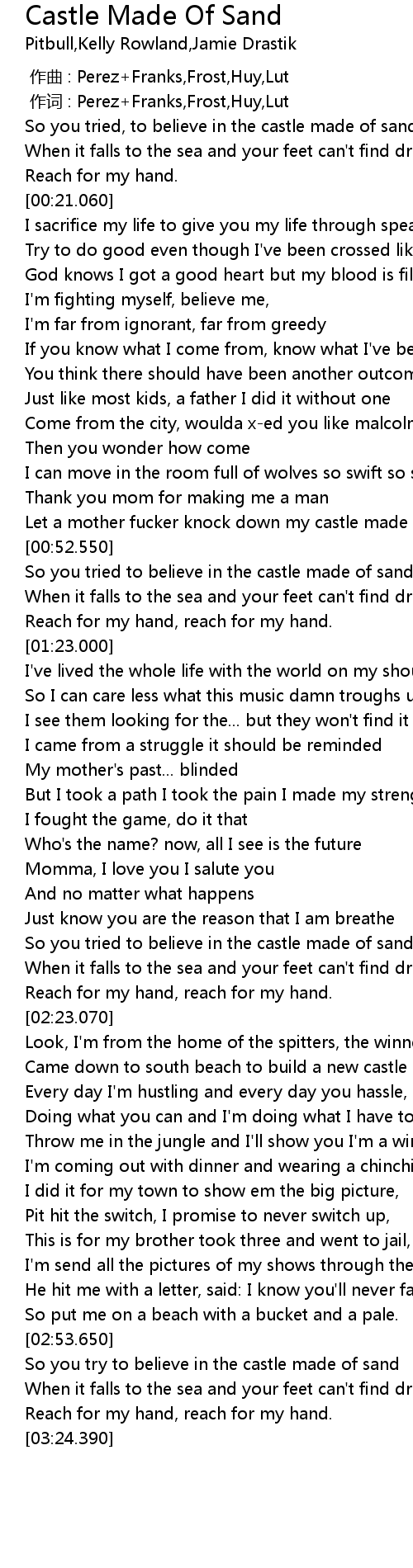| [00:50.630] | Let a mother fucker knock down my castle made of sand |