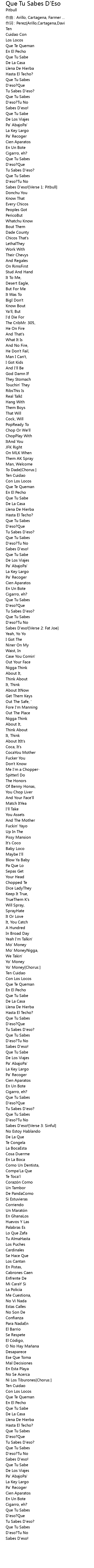 | Sabes D'eso![Verse 1: Pitbull] | |