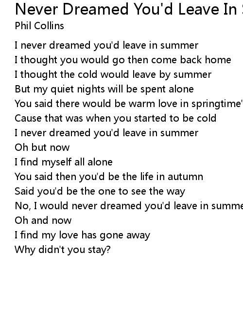 No, I would never dreamed you'd leave in summer |