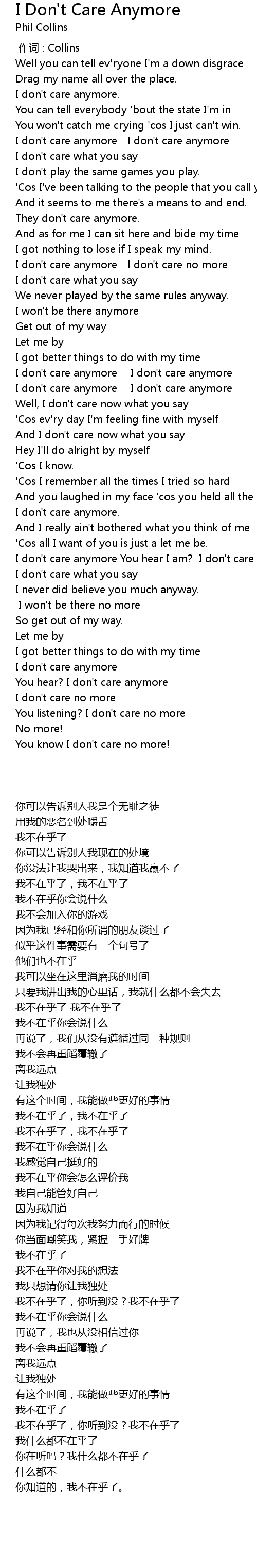 | [00:51.83] | I don't care anymore I don't care anymore |