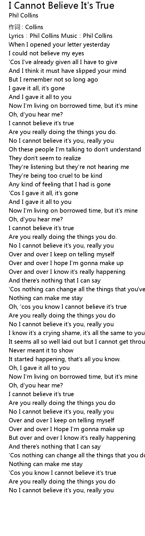 | Oh, ' cos you know I cannot believe it' s true | |