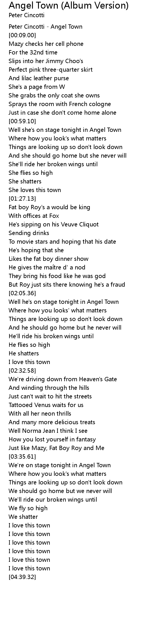 | [00:02.00] | Peter Cincotti Angel Town |