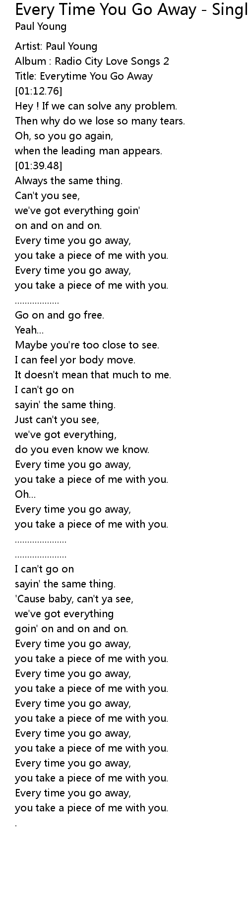 Every time you go away, |