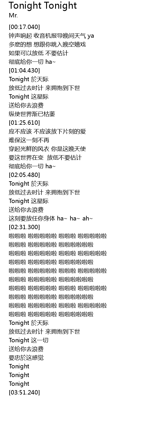 | [03:24.880] | Tonight 於天际 |