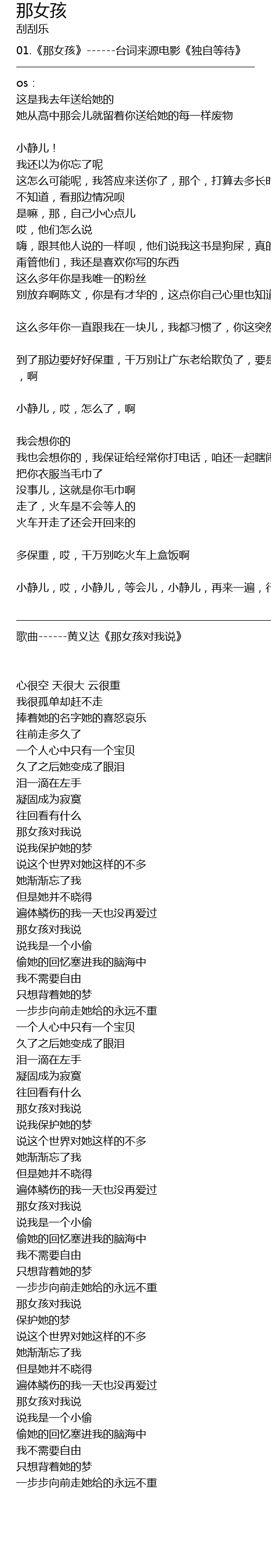 | 01.《那女孩》------台词来源电影《独自等待》 | |