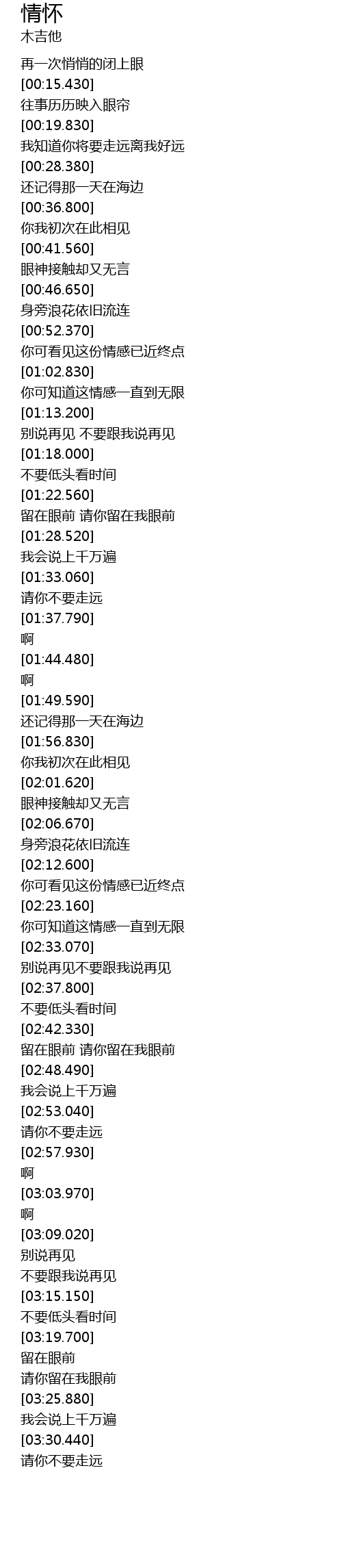 | [03:32.220] | qing ni bu yao zou yuan |