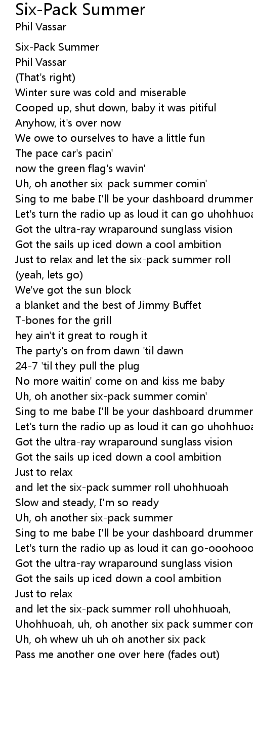 and let the six-pack summer roll uhohhuoah |