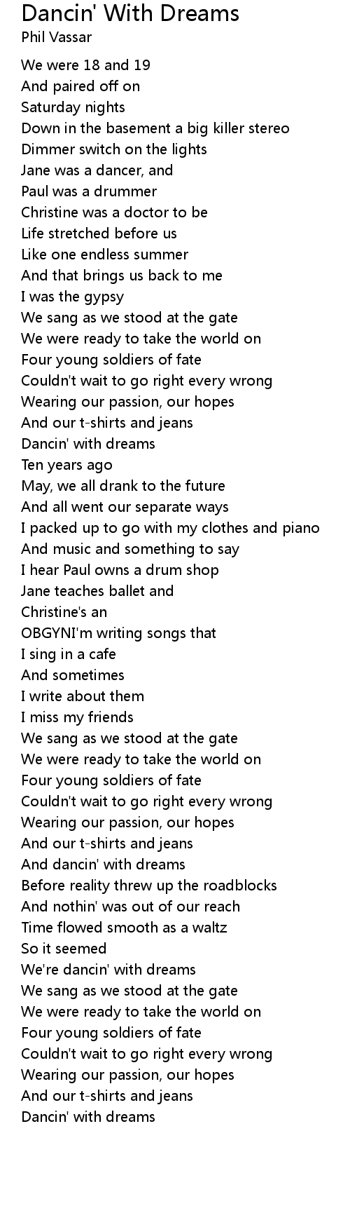 And dancin' with dreams |