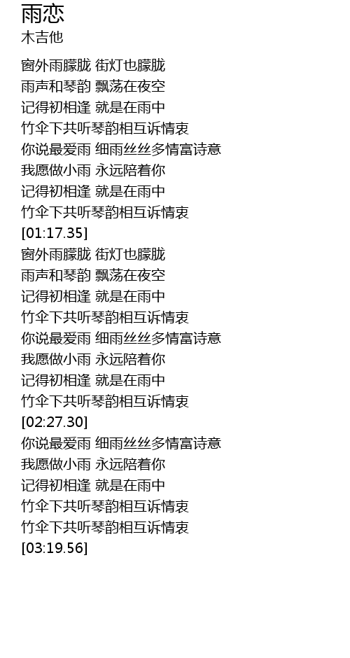| [01:55.82] | 你说最爱雨 细雨丝丝多情富诗意 |